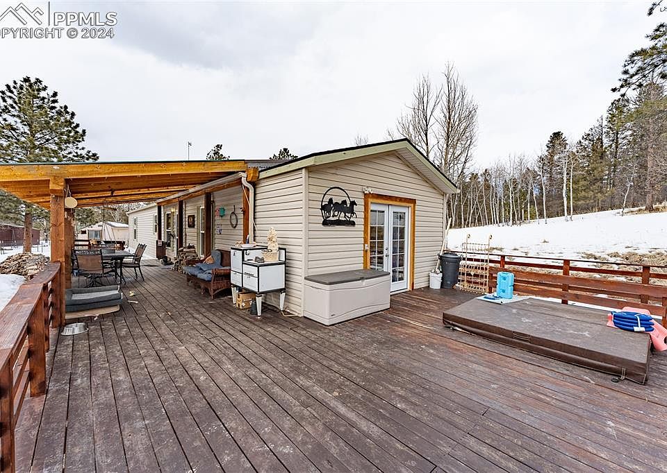 PRIMARY HOME + CABIN + 5+ ACRES! Welcome to your serene mountain retreat on 5.15 acres of pristine land! Originally a charming cabin nestled among the aspen trees, this property has evolved into a unique blend of rustic charm and modern comfort. The cabin features a cozy living room, kitchen, and bathroom, with a loft overlooking the heart of the home. In 2015, a spacious 1100+ sq ft manufactured home was seamlessly integrated, offering contemporary living with 3 bedrooms, 2 bathrooms, and the warmth of a wood-burning stove. The living space is bathed in natural light, creating a welcoming atmosphere for family gatherings or quiet evenings by the fire. A wrap-around porch with a hot tub provides the perfect vantage point to soak in breathtaking views of the surrounding aspen grove. The cabin, with its distinct charm, can be utilized as a guest house. Imagine waking up to the peaceful rustling of aspen leaves and having your morning coffee on the porch while enjoying the tranquil ambiance. Outdoor enthusiasts will appreciate the well-maintained grounds that include a large barn connected to a greenhouse, ideal for cultivating your garden all year round. A generous garden space and a shed/chicken coop add to the charm of this property, providing ample opportunities for those with a green thumb. For those who love to hit the road, RV hookups are conveniently available. With its perfect blend of nature and modern amenities, this property offers an unparalleled opportunity to embrace a mountain lifestyle. Don't miss your chance to own a piece of paradise with income potential. Come and experience the magic of this mountain retreat – where every season brings a new chapter of beauty and tranquility.
