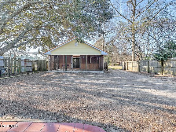 Presented for sale is this great cottage located in the heart of Leland with some room to spread out. How about a little bit of that country feel within 5-10 minutes of everything you'll need to carry out your daily/weekly needs? Located on just under one full in-line acre, you'll forget how close you are to everything. Exterior features are extensive too and include a front covered porch, rear screened porch, metal roof (2018), functional well, gated garden area, multiple fruit trees with a few grape vines that produce (peach, apple, plum), lovely firepit with a paver patio, garden shed with lean-to, detached 2-car carport (slab base with pit), detached 2-car garage on slab (one-bay door, metered, extensive shelving) with pedestrian entry, mostly fenced yard and multiple spigots to keep things wet in the hotter months around this great property. When it's time to cool off, chill out on your front porch and people watch or hide out back on your huge screened in porch (note: intention was to finish this area so the structure is substantial and there is rough plumbing installed at the inside/right corner). Step inside to your new conservatively laid out floor plan with a large living room, two bedrooms, kitchen with adequate pantry storage, full laundry room, den/hobby area and 1.5 baths. Note that the frontage of this lot is zoned commercial with the remainder out to the back of the lot zoned residential (small business opportunity and potential for future rezoning at some point down the road). While you may want to add some of your own finishing touches here and there, you won't get another chance like this over the next couple of years as homes on this road with this kind of acreage rarely come available. Please do not enter the property without a professional agent accompanying you.