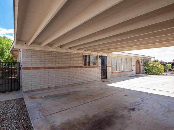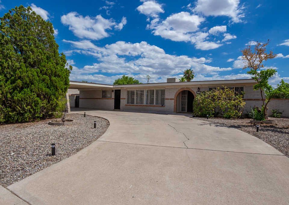 Fantastic home w/a circular driveway & pristine curb appeal. Beautiful tiled floors, soothing palette, ceiling fans, window blinds, & patio access from dining area. Plenty of white kitchen cabinets, breakfast bar, interior laundry room, & pantry. Formal living room. Plush carpet in all the right places, generous sized bedrooms, 2 baths, & ample closets. Wonderful Arizona room w/endless possibilities. Large backyard w/patio & room for your dream desert oasis. Convenient location to Shopping & Dining.