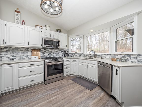 Welcome to 9340 Greystone! This beautifully remodeled 4-bedroom, 2.5-bath home is nestled in the highly sought-after Mattawan School District, situated on a generous 3/4 acre lot. Enjoy a host of delightful updates, including new flooring, modern appliances, stylish light fixtures, & so much more! The main floor welcomes you with a spacious great room adorned with vaulted ceilings, & flooded with natural light. The remodeled kitchen is a dream, featuring stainless steel appliances, a chic tile backsplash, updated countertops, & striking white cabinetry. Adjacent to the kitchen, a charming eating area with access to the covered deck, offering picturesque views of the expansive backyard. Venture upstairs to discover 3 bedrooms & 2 updated full baths, including the primary suite with ensuite bath. The lower level walkout boasts a spacious family room, a convenient half bath with laundry, & easy access to the attached 2-car garage. The basement adds versatility to the home, with a 4th bedroom & ample space for all of your storage needs. Step outside to the fully fenced backyard, offering a safe & expansive area for both pets & children to play. A storage shed adds practicality, providing extra space for your outdoor essentials. Don't miss out, schedule a showing today!