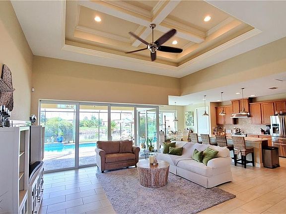 - Interior Features: Ceiling Fans(s), Eating Space In Kitchen, High Ceiling(s), Open Floorplan, Stone Counters, Walk-In Closet(s), Crown Molding, Kitchen/Family Room Combo, Window Treatments, Tray Ceiling(s), Coffered Ceiling(s)