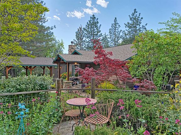 Charming 3 bedroom 2 bath, 2116 sqft home on one acre. Looking for a workshop? How about 40x40 with 200 amp panel w/separate meter, industrial air compressor, industrial dust collector, welding table, workbench & cabinets, plus a 2-car attached garage & under house storage. This property features mature fruit tree orchard & luscious gardens. Country kitchen has custom-made knotty pine cabinets, stylish range vent hood & Silestone counters. Spacious Master suite has vaulted ceilings & walk-in closet. Jacuzzi tub & stone/tile walk-in shower share space with hickory vanity w/double bowl sinks. Solid wood doors, dual pane windows, 2 HVAC systems, stone embellishments are all special highlights. Walk-in pantry is a surprise behind red double doors. Even the hall bath has a jetted tub! Circular driveway has a Tahoe-style portico for covered parking. Walk the stone path to the adorable playhouse & outdoor kitchen/bar area. Patio has double sided stone fireplace. You will not be disappointed!