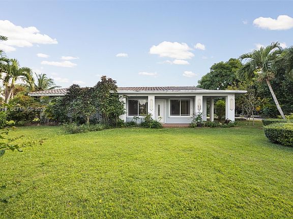 Set on a rare 1-acre lot in Palmetto Bay, this charming mid-century home offers serene, suburban living just moments from top dining and major thoroughfares. Built in 1956, the 3-bedroom, 2-bath residence features timeless terrazzo floors, a bright split-bedroom layout, and central A/C. The spacious yard invites endless possibilities with room to expand, add a pool, or create your ideal outdoor retreat. Additional highlights include a utility room, carport, hurricane shutters, and mature fruit trees. A rare opportunity in a coveted location.