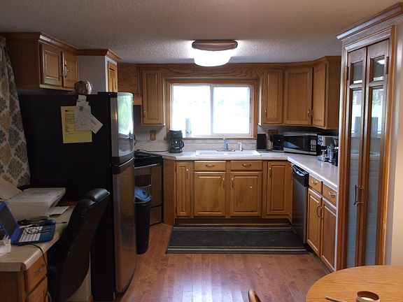 Enjoy this light and bright home: the kitchen opens up to the living room with views of the gorgeous stone fireplace. Entertain or just relax in the four-seasons room or on the front veranda and enjoy the property with its 5 fruit trees, detached garage and two story storage building. A concrete slab is ready and waiting for a hot-tub, and the walkway is lit with solar lights. With its updated plumbing, electric and a new roof, this house could easily be home! Buyer to verify heated square footage.