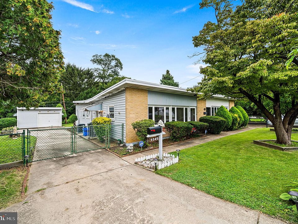 Wonderfully Charming Twin Ranch Home in Northeast Philadelphia! Ideally tucked away in an established area of Bustleton, this 3BR/1.5BA residence delightfully welcomes you with manicured shrubbery, attractive exterior brick details, and an expansive driveway leading to the detached 1.5 car garage. Explore the interior to discover an openly flowing traditional floor plan, tons of soft natural light, wood and brick accents, a large living room, and a fully-equipped eat-in kitchen featuring oak cabinetry and a tile backsplash. Each bedroom is generously sized with a dedicated closet, while the primary bedroom also boasts an attached half-bathroom with retro pink tile. Perfect for summer cookouts, the fenced-in backyard includes a spacious covered patio and ample green-space for playing or gardening. Other features: AC unit Installed (07/2023) gated parking, vinyl windows, laundry area, full bathroom with shower/tub combo, near shopping, restaurants, schools, Lorimer Park, and public transit, and more!