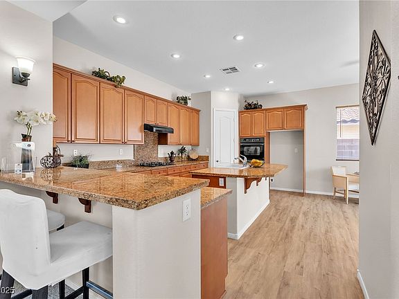 Experience amazing single-story living in the heart of Centennial Hills. This refreshed 3-bedroom, 2.5-bathroom home with a versatile den offers comfort and functionality with fresh paint, new carpet, and luxury vinyl flooring throughout. The open layout includes a spacious living area, dining space, and separate laundry room. The kitchen connects seamlessly to the main living space, perfect for everyday flow and entertaining. The private primary suite is complemented by two additional bedrooms and a flexible den ideal for guests or work-from-home needs. Enjoy a low-maintenance backyard with desert landscaping and a covered patio, plus a 3-car garage for added storage and convenience. Located near parks, shopping, restaurants, and top-rated schools in a peaceful Centennial Hills neighborhood. Schedule your private tour today!