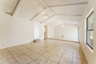 Cozy fireplaceSingle-story residenceCeiling fansBright open layoutTile and carpeted floors