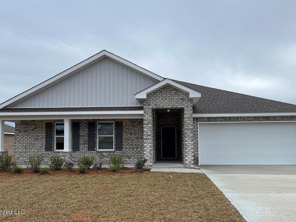Enjoy luxury vinyl flooring throughout the home's living areas, complimented by plush carpeting in each of the bedrooms. The kitchen and bathroom countertops gleam with stunning granite, a spacious island provides ample space for meal prep and entertaining. The primary bedroom is tucked away on back side of the house for added privacy. The primary bathroom offers a spacious tranquility with a soaker tub and a large shower, dual vanities, and a generous walk in closet. You'll appreciate the elegant recessed LED lighting and smart home features. You will never be too far from home with Home Is Connected.® Your new home is built with an industry leading suite of smart home products that keep you connected with the people and place you value most. This home was built with engineered trusses and expansion joints for an exceptional insurance rating. The roof and exterior also feature zip sheathing- a durable and reliable material specifically chosen for its ability to withstand high winds and wind driven rain. Generous secondary bedrooms and lots of closet space completes this timeless single level design. Community is located minutes from I-10, Keesler Air Force Base, Ocean Springs and Biloxi Beaches. Casino and family entertainment within a few miles. Promenade shopping approximately 7 minutes West.