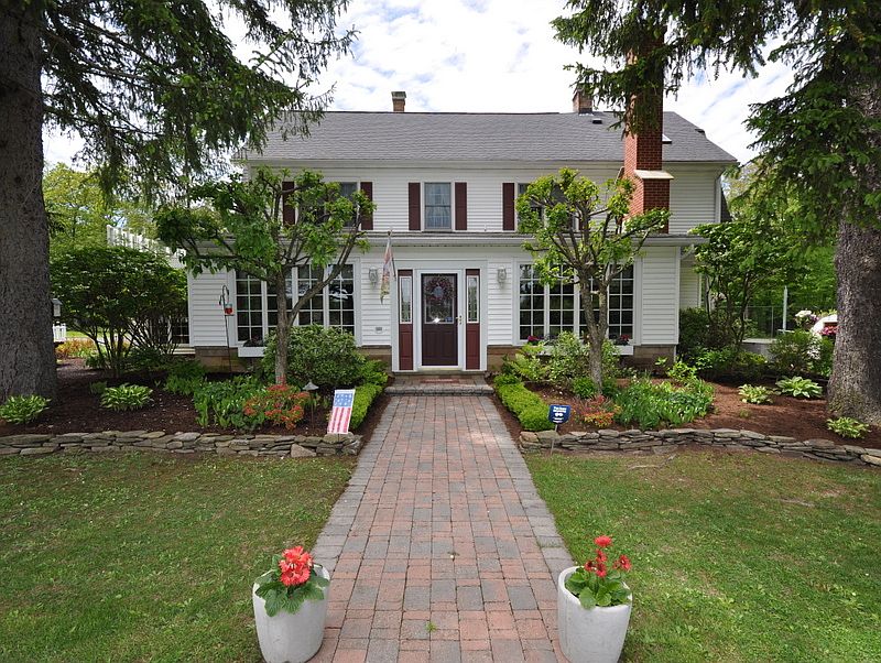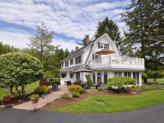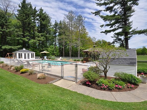 Defined as elegant & private. Winding, tree lined driveway leads to 3000 + sq ft 4 bdrm colonial on over 14 acres of woods & possible pasture. lst fl: Fam Rm w/slate floor, wbstove & cath. ceiling; Step up to applianced kitchen w/ ceramic fl interlaced w/hardwood; sliding door leads to hot tub rm. Formal Liv Rm w/ cherry ceiling, hdwd fl & w/wbfpl.Den overlooks heated ingr. pool & lighted tennis ct.2nd fl: 4 bdrs. Master w/ 20' long bathrm w/vessel sinks,oversized jetted shower & palladian window.Finished bonus rm. on 3rd fl.Game Rm over 3 car garage.24x40 pole barn.Gazebo & pool hse.