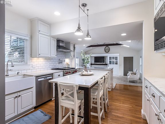 This stately Victorian, perched on a .17-acre corner lot, has only had four owners in its lifetime. Yet, it has been extensively upgraded and restored for modern living while maintaining its vintage charm. The 3,216-square-foot layout features three bedrooms, three bathrooms, a formal living and dining room, an office/den, a family room, and a lower-level flex space (with a separate entrance) with options for a gym or guests. Excellent for the chef in your life, the kitchen had a studs-out remodel and includes a Wolf range, Bosch range hood, Bosch dishwasher, and a spacious pantry. The family room addition opens up from the kitchen with custom built-in shelving, a gas fireplace, skylights, vaulted ceilings, and exposed beams. Escape upstairs to a light-filled and renovated primary suite with a custom tiled walk-in shower with a bench, dual sinks with a custom marble vanity, and a large walk-in closet. The large yard is perfect for spring and summer and includes a patio space, raised garden bed, and shed. Enjoy living blocks away from the forthcoming 2026 remodeled library, St. Johns Farmers Market, George Park (set to receive a $3M renovation), movie theaters, restaurants, cafes, grocery stores, and a hardware store. [Home Energy Score = 2. HES Report at https://rpt.greenbuildingregistry.com/hes/OR10236705]