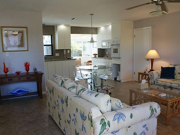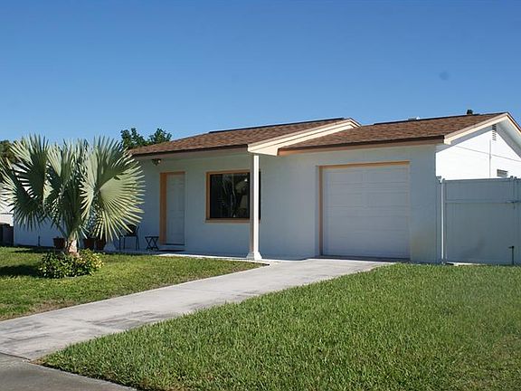 AWC - Taking Backup Offers Welcome to Mrs. Clean's open concept renovated ranch. Amazing sight lines from front door to huge family room window overlooking privacy fenced yard, screened in-ground pool and butterfly habitat. Easy clean porcelain tile floors. Kitchen window opens to pool-side lanai to serve food or see family swim. Ceiling high self-closing kitchen cabinets with LED can lights above huge counter and back splash. Large sink with disposer, filtered water and dispensers for dish and hand soap. Hidden dishwasher. Glass cooktop with side knobs (so little fingers can't reach), microwave over stove, and self-cleaning wall oven complete this cooks dream kitchen. TV on swing mount can be enjoyed from kitchen or family room. Insulating pleated window shades in family and living rooms (bottoms lift or tops lower to ventilate in privacy). Tiled bath walls and ceiling, fan, acrylic tub/shower, huge medicine cabinet with 4 bulb light. Master bedroom has full wall built in storage, built in drawers under bed (custom bed sells with home) and private door leading to pool area features easy to clean blinds inside glass. Mounted TV stays as well! Second bedroom (office) has built in storage and desk. All rooms feature remote ceiling fans. Laundry in finished garage has sink, counter and pull down stairs to attic. Sprinkler on well saves water bill. Boat or RV parking with power/water behind vinyl gate (no HOA prohibition) Plus a 8x10 storage shed (some lawn tools available) All pool equipment conveys. Furniture available. Call today!