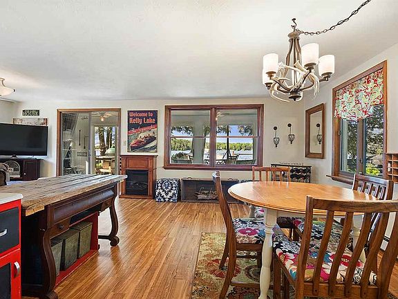Nicely updated 3 bedroom 1.5 bath home with great frontage on desirable Kelly Lake! This home offers an updated kitchen, updated bathroom, updated flooring, spacious rooms, and a nice 4-season rooms with great views of the lake. Outside is a huge 3+ stall garage for all your toys with a storage loft above that could potentially be used to expand the living space in the future. There is a large deck overlooking the nicely landscaped yard and great waterfront views. The waterfront offers a gradual sandy bottom. Don't miss out on this great waterfront retreat!!!