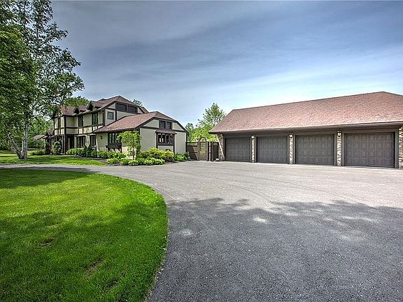 To schedule a viewing call 315-802-1040 will work with buyer's agent** Water Front Privacy and a absolute oasis bounding with wildlife, self-sufficient acreage (raspberries, blueberries, strawberries, fruit trees, gardens) and beautiful and peaceful land with canal access for your boat with a large dock at the bottom of your property. Watch Osprey and Bald Eagles fish along the canal from your family room and kitchen windows. This property is a birders paradise. Enjoy staying home with your own private year-round spa in a year round sun room or on your deck over looking your 18 x 36' in ground pool. The patio around the pool is ideal for entertaining even during times of social distancing as you have space galore to have friends and family over for bar-b-ques and waterfront/pool side living. The home is very private with gated entry and an evergreen tree border, giving you complete solitude. The land is gorgeous and will give you all the space to relax, enjoy the wildlife and/or be completely self-sufficient. The home is fabulous for working from home with high speed broad band and multiple offices. The eat in kitchen has all the modern conveniences and is ideal for foodies who like to cook and impress their friends with gourmet evenings. The home has a formal dining room (ideal for family feasts during the holidays), a large living room complete with exceptional fireplace (ideal for Christmas around the fire). The eat-in kitchen is fantastic for cooking, baking and entertaining with views to the canal and your in ground pool. Off the kitchen to the west is a lovely snug (family room or home office) and through a sliding door you enter a sun room with a built in spa---providing year round relaxation therapy. Off the kitchen you have a hall with a pantry and 1/2 bath leading to the entry/boot room. Past the boot room you have a laundry complete with sink, fridge, storage and office space. At the end of the east wing of the house is another office/family room with sliding doors overlooking the pool and beyond to the canal. East of the house you have a very large (1650sg ft) 4 car detached garage with separate back-up heating boiler for the house, fridge and counter space for canning, plenty of space for a work shop, storage and more. There is a full basement providing workout room, pantry, wine cellar, and more. This home has everything you need to enjoy a relaxed life on our own land that gives you plenty of space yet is only minutes from all amenities in Cicero (4.5 miles) or Clay (4.3 miles) and 30 minute from downtown Syracuse via the 81 at Brewerton.
