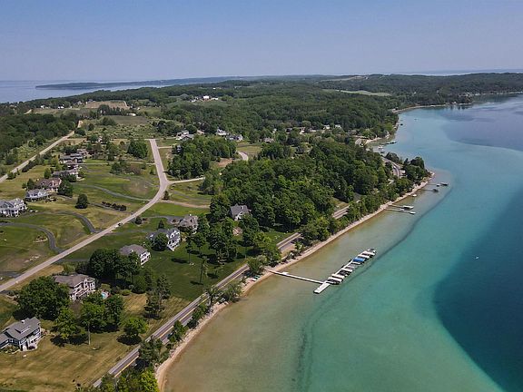 Welcome to 9343 Rolling Ridge Dr, located on Old Mission Peninsula in Traverse City! This stunning custom-built ranch style home boasts 4 bedrooms & 3 full baths, w/ shared access to East Grand Traverse Bay & 1100 ft of association frontage. You'll enjoy your very own guaranteed boat slip, perfect for exploring the beautiful waters of the bay. The chef's kitchen is a true masterpiece, featuring custom cabinetry and lighting, granite counters, & stainless steel appliances. Hand-scraped hard wood floors throughout much of this level add warmth and elegance. The main floor is home to the primary suite, complete w/ 2 walk-in closets, tile shower, and access to the 4 season sunroom. The open concept living area was designed to offer a 180-degree view of East Grand Traverse Bay complete w/ high visibility screens so the views are always flawless. Living room w/ a gas log fireplace and granite hearth is perfect for cool Michigan evenings, and main floor laundry for added convenience. Step outside onto the composite 2 level deck & take in the gorgeous views of the bay. The lower level walkout leads to a flagstone patio w/ a hot tub & more breathtaking water views. You'll find 2 additional bedrooms, 1 full bath, an exercise room, and a family room & wet bar w/full size refrigerator on this level. The 3 stall garage offers hot & cold water w/ floor drains plus it’s plumbed for gas if you ever need to heat it, making it the perfect space for all your vehicles & toys. Home is 2x6 construction with R45 insulation, which speaks to the quality and to the seasonal efficiency. Additional features include 4 zone heating/cooling, air purifying system, security system, full house sound system, & so much more! The beautiful professional landscaping on the 1.66 acre lot is truly a sight to behold. Don't miss out on this incredible opportunity to live in one of the most sought-after locations in Traverse City!