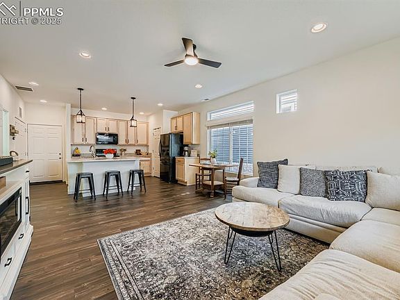 **PICTURES COMING SOON** Welcome to the desirable Banning Lewis Ranch neighborhood! This newer Townhome built in 2020, with 3 bedrooms and 3 bathrooms is sure to impress! As you enter your new home, you are immediately greeted with an abundance of natural light, perfectly accented with neutral interior paint tones and tasteful cabinetry. The living room, dining room and kitchen combination provides that open floor plan, perfect for entertaining! The Kitchen is a dream, featuring a huge island and breakfast bar with a stainless steel sink, and pantry. All appliances, including the washer and dryer are included in this lovely home. The main level features a 1/2 powder bath, and under stair storage. Enjoy interior entry from the garage for added security. The LVP flooring throughout the main level is perfect for durability and easy maintenance. Head upstairs to the upper level to find a generously sized Primary bedroom featuring TONS of natural light, a large corner sitting area perfect for an at home office space or reading nook, and an adjoining ensuite bathroom with a stand-alone shower with glass enclosure, a double vanity, toilet room and a spacious walk-in closet. 2 additional bedrooms and another full size bathroom complete the upper level nicely. The community amenities are sure to impress; including multiple pools, a state-of-the-art workout center, and a clubhouse perfect for get togethers. Beautifully landscaped local parks in addition to walking & biking trails, waterpark and pickleball courts, and a dog park which is great place for your pet friends! Fiber optic internet! Summer concerts at the park and friendly community gatherings. The Banning Lewis lifestyle is truly unmatched, and the schools are top rated. Other notable mentions: Recent clean radon report results, recently serviced furnace, and a 5 year roof certificate. Take a tour of this beautiful home today, before it's gone!