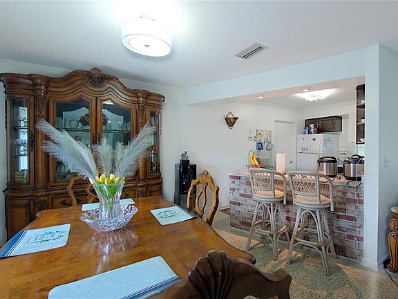 Welcome to this charming single-story home on a spacious lot offering endless outdoor possibilities. This residence features a bright living area that flows seamlessly to a screened-in covered patio overlooking the large fenced backyard - perfect for entertaining, relaxation, or future enhancements like a pool or expanded garden. The functional kitchen connects to the dining area via a convenient breakfast bar, creating an inviting space for daily living. Two generously sized bedrooms provide comfortable accommodations, each enhanced with ceiling fans and abundant natural light. Notable features include a durable metal roof (installed March 2025), a covered carport for vehicle protection, and mature landscaping that adds charm. The expansive fenced yard offers excellent potential for pets, outdoor activities, or customization to suit your lifestyle. This property presents solid value with room to grow, making it an attractive opportunity for families, first-time homebuyers, or investors seeking potential in a desirable location. Schedule your private showing today and see what makes this home special.
