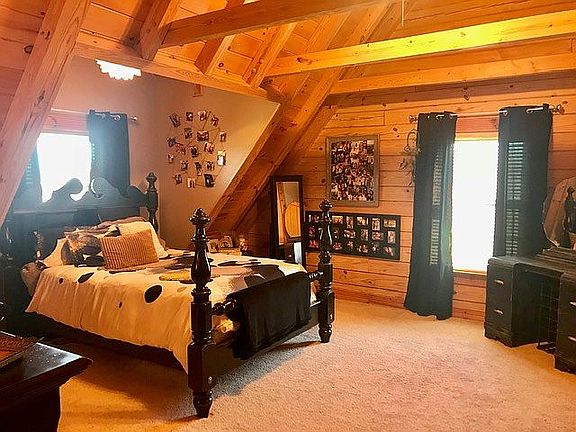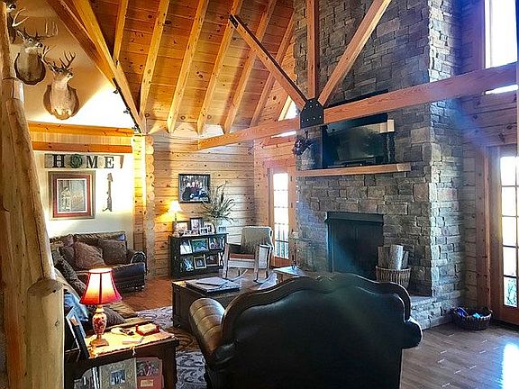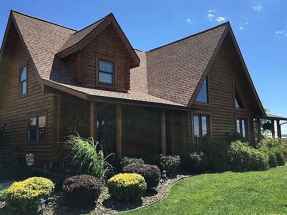 Get a view of this breathtaking log home located on 2.98 acres. The features include vaulted ceilings, hand hewn log stairway, floor to ceiling stone fireplace, solid hand crafted hickory kitchen cabinets and a finished basement. All new lower lever flooring of 3/4 in hickory newly installed. The exterior features are 30x40 pole barn, new roof, pergola wrapped in stone bases and an oversized 2 car garage. Late nights you can walk out on your own bedroom suite private covered porch. This beautiful home awaits it's new owners!