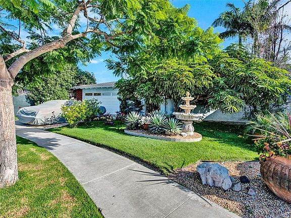 Gorgeous one of a kind Single Story, over 2000 sq. ft. on extra large lot approx. 8850 sq. ft in very desirable neighborhood of Fountain Valley. Gated entry with sunken low maintenance courtyard, fire pit, seating area and landscaped for privacy. Ideal floor plan features Master suite with custom closets, crown molding and Travertine flooring. Beautiful Master bathroom with marble shower and vanity. 2 other bdrms have wood flooring, spacious closets & crown molding. Hall bathroom with Porcelain shower & flooring. Living Room with fireplace, pitched ceilings,Crown Molding & Bow window looking to front courtyard. Separate Formal Dining Room with rear yard access, recessed lighting, ceiling fan and marble flooring. Huge family room with fireplace,crown molding and wired for surround system. Spacious kitchen with recessed lighting, bay window, oak cabinets and Kitchen Aid appliances. Tiled breakfast counter open to the family room, separate inside Laundry Room and Finished 2 car garage with workbench and plenty of storage. This home has been beautifully upgraded throughout from floor to ceiling with tasteful details. Rear yard is perfect for entertaining with stainless steel BBQ area, fridge, fire pit, raised planters, raised deck with gazebo and dining area. Customized stand alone man-cave, insulated, with crown molding,wood flooring and french doors. Perfect for office/ work area. Move in ready.