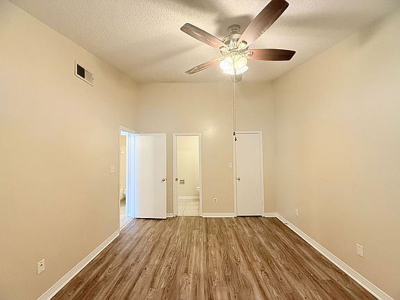 This well-maintained 2-bedroom, 1.5-bath quadplex is ideally located off 9 Mile Road, and just minutes from the University of West Florida, local hospitals, shopping centers, dining options, and more. Inside, the home features a functional, comfortable layout with abundant natural light. The open-concept living area boasts durable tile flooring and a beautiful grand fireplace as its focal point. The galley-style kitchen offers ample cabinet space, a double-basin sink, refrigerator, range, and dishwasher. Outside, enjoy the large screened-in back porch, as well as a private patio and fully fenced backyard. Additional highlights include a dedicated laundry room with space for a full size washer and dryer, as well as water, sewer, sanitation, and lawn care all included in the monthly rent.