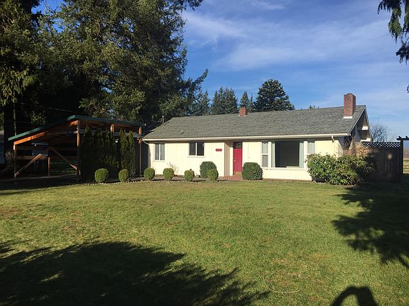 Cute 1950's rambler in the country on a spacious sunny lot featuring 3 bedrooms, 2 baths, 1 car garage and carport. Open kitchen with a breakfast nook, living room has a wood burning brick fireplace. Great outdoor space with a back patio. New furnace, newer vinyl windows and roof. All appliances included. Easy access to I-5.