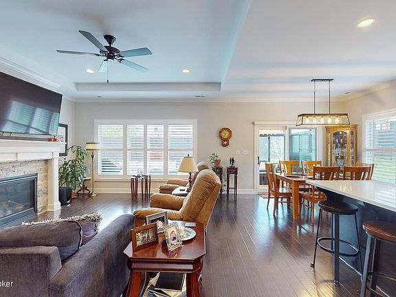 This stunning, move-in ready garden home offers numerous builder upgrades throughout including top of the line engineered wood flooring, plantation blinds, an all-season sunroom with adjoining deck and so much more. As you step inside the spacious entry foyer, you're greeted by an expansive living space bathed in natural light, thanks to large windows the frame backyard views of a lush landscape. The open floor plan seamlessly connects the living, dining, and kitchen areas, creating an inviting atmosphere. The kitchen features espresso tone cabinetry, quartz countertops, a full suite of stainless steel appliances and a walk-in pantry. The living room has a gas fireplace, tray ceiling and plenty of space to enjoy. Off the dining area the sunroom offers year-round enjoyment thanks to its own heating/cooling system and automated shades. The well-appointed primary suite has ample space with room for a king size bed, a custom walk-in-closet and a luxurious en-suite bathroom complete with a soaking tub, walk-in shower, and double vanity. Down the hall there are an additional two guest bedrooms and another full bathroom with a tiled zero entry shower and comfort height vanity. Off the foyer, the mudroom adjoins the separate laundry room and connects you to the climate controlled two car garage. This home offers outdoor living at its finest with a covered front porch, back deck, and all lawn maintenance included in the monthly HOA fee. Schedule your private tour today and see all the Villas of Glenmary Village has to offer.