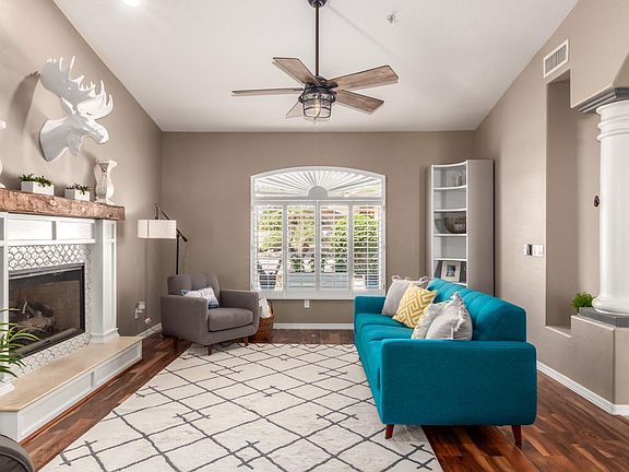 This home is absolutely stunning and a must see in a highly desirable Scottsdale location. Walk in through the brand new iron and glass front door into the home that was made to entertain. Featuring vaulted ceilings an open floor plan and a resort style back yard. There is porcelain tile throughout the main living areas with a beautiful engineered hardwood acacia in the other areas of the home. The cabinets and hardware throughout entire home were just professionally refinished including new pulls and soft close hinges. Both bathrooms have been tastefully updated, the master bath has a frameless shower, toilet/bidet, solid surface counters and vessel sinks. The fireplace in the family room is a hand hewed Amish mantel. The pool has a newer pump, the pebble-sheen was resurfaced, new tile and 4 deck jets were installed and they also resurfaced the cool deck. The HVAC unit was replaced in 2019. North/South exposure; interior lot, 4 mature citrus trees (Orange, Grapefruit, Lemon, Ruby-red grapefruit), close proximity to 101, shopping and dining, walking distance to Parks. There is also surround sound available both indoor and outdoor.