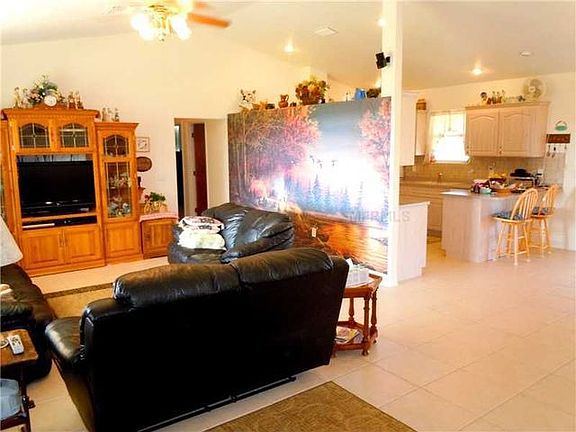 Short Sale. STUNNING VIEWS and PRIVACY! If you're looking for over 10 ACRES of FENCED property with no nearby neighbors, then you'll want to see this beautiful 3 bedroom, 2 bath home overlooking an open pasture, yard, beautiful blue sky and distant tree line! There's LOTS of privacy here. Neighbors are all off in the distance. This home features a GREAT ROOM floor plan which includes ceramic TILE flowing everywhere, three spacious bedrooms, a huge oversized front porch, and a covered lanai extending almost the entire width of the home. The large kitchen includes a lot of cabinets accented with crown molding and Corian countertops, recessed lighting, breakfast bar seating and all of the appliances will stay. The nearby separate eat-in area offers a beautiful view of the backyard. The master bedroom is spacious and it also includes a big walk in closet. The master bathroom has an oversized sink vanity and a huge glass block accented walk in shower. You can't miss the ENORMOUS 80'x40' detached metal building/garage that's great for...ANYTHING! Metal building has 1 entry door and 4 roll up doors, 150 amp service, 40'x20' game room and 1br/1ba efficiency apartment. Behind the garage is a two stall horse barn and the entire property is fenced and ready for your horses or livestock. Home is on well and septic, also included is a high valued water purification system. Energy features include insulated steel doors, double paned windows, blown in insulation plus foam filled concrete block. What a GEM!!!