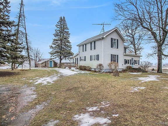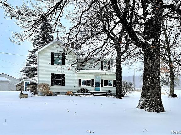 Bring your creative ideas along for this turn of the century farmhouse and begin making memories of your own Two Stories with over 1800 sq. ft. of living space. Main Floor has a large bedroom with full bath, large original farmhouse style kitchen is the center of the home. Appliances included. Covered porch, living and family rooms, plenty of closet/storage spaces. Upstairs you will find potential 2-3 more bedrooms and 1/2 bath. (electric and water upstairs is currently disconnected as previous owner did not use this space. Located on over an acre of land, multiple storage sheds and detached garage are included. Roof on garage just over a year old.