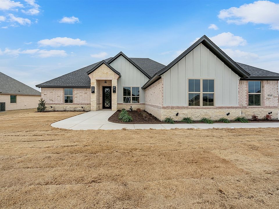 Step into the upscale living room, complete with a captivating floor-to-ceiling stone fireplace that seamlessly connects to the kitchen. The kitchen is a culinary paradise, featuring an oversized island, upgraded cooktop, vent hood, under-mount lighting, and a massive walk-in pantry for all your storage needs. The oversized owner's retreat is a sanctuary, offering his and her vanities, a luxurious bathtub, an astonishing walk-in shower, and an expansive walk-in closet. 3 secondary bedrooms are on its own wing of the home for maximum privacy. This spacious floorplan also offers a game room or 5th bedroom. The separate utility room is equipped with built-in cabinets, adding convenience to your daily routines. Unwind on the oversized covered back patio and bask in the beauty of the Texas sunset. With meticulous attention to detail, including extensive crown molding, wood-like tile flooring, and FOAM insulation, this home spares no expense. Located just minutes away from the Chisholm Trail Parkway, convenience and accessibility are at your fingertips. Gated community with trails, park, and pool.