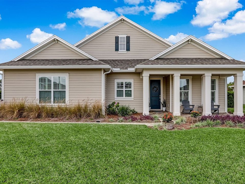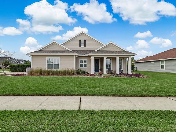 Beautiful 3 bedroom 2.5 bath home with many upgrades. This home boasts over 2,367 sqft of gorgeous living space. 3 car garage, in home office, custom drop zone, luxury vinyl plank flooring, stainless steel gourmet kitchen with double ovens, gas range, soft close cabinets. Enjoy a community setting while still having privacy in your back yard oasis. This back yard features a mature privacy hedge with screened in lanai, brick pavers, custom gas fire pit with ample room for entertaining along with a large putting green and view of the pond. Don’t let this property pass you by. Schedule a showing today.