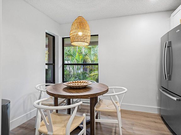 Upgrades at every turn! The eat-in kitchen features white shaker cabinets, quartz countertops with waterfall edge, subway tiled backsplash and stainless steel appliances. The master offers double door entrance, roman bathtub and custom closet. The spacious guest bedroom includes a new closet system and private balcony. The guest bathroom features an open-tiled shower and LED vanity mirror. A full size dining room opens up to the living area with vaulted ceilings. New flooring, paint, molding, recessed lighting and interior doors throughout. New AC installed in 2022. Boca Ridge is located minutes from the FL turnpike and Uptown Boca. Just a short drive to I95, Mizner Park, Boca Town Center Mall and downtown Delray Beach. Don't miss out on this top notch property! Short notice showing ok!