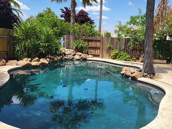Beautiful upgraded Elk Grove home has 2,529 sf with 5 Bedrooms, 3 full Baths, 3 car Garage and sparkling freeform pool with waterfall. Exceptional location in Elk Grove School District near Edna Batey Elementary School, Albiani Middle School and Pleasant Grove High School. Outstanding Mediterranean style home has cathedral ceilings, walls of windows, decorator tile floors, luxury laminate flooring, extensive stamped concrete patio with trellis cover. Formal Living and Dining Rooms have tall ceilings and celerestory windows. Remodeled Kitchen has slab Granite counters, top of the line stainless steel appliances with gas cook top and entertaining bar open to Family Room. Master Suite has large Bath and two separate walk-in closets. Remote Bedroom and Bath downstairs. No smoking of any kind allowed inside house or yard. No interior or exterior growing of cannabis on property. All pets must be approved by Landlord. Tenant pays all utilities: Gas, Electricity (SMUD), Water, Sewer, Garbage etc. Owner pays for landscaping and pool maintenance.