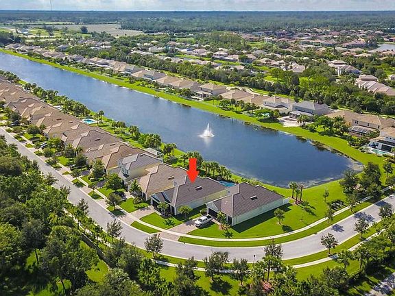 Sprawling lakefront home with fountain view + brand new heated pool. Large paver patio is fully fenced with landscaping & lighting. Model features 2 master bedroom suites has one located on 1st floor and a private guest suite on the 2nd floor. Possible 5th bedroom with French doors and perfect for the den/office. All tiled flooring throughout with carpeted bedrooms. Layout is open & airy with high ceilings and crown molding. Kitchen features wood cabinetry, granite countertops, center island and SS appliances. The garage was extended for 18ft boat or RV. Front porch is covered and back lanai is covered/screened. Master suite features lakeview and has private bath with dual sinks and an extended walk in shower. Gated community with playgrounds, heart trail and walking paths. Good schools!
