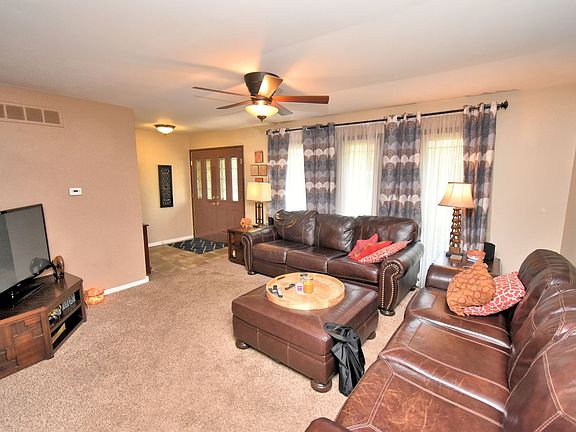 Beautifully Updated Home in Fairmeadow subdivision.1883 sq ft of finished Living space. Spacious Living room. Dining room with Hardwood floor. Bright and Cheery Kitchen with Granite Counter tops, Ceramic floor and Stainless Steel Appliances. 2 Sliding doors lead to the amazing deck with Pergola and Grape Vines. Lower level has a Gathering room and Brick Fireplace, Laundry room with Washer and Dryer included, and a beautiful Bath with Walk in Shower. Sliding door leads to a patio area. Upper level has 3 bedrooms with Ceiling Fans. Main bedroom can have its own personal Bath. Main bath is really nice with ceramic tile. Concrete crawl for all your storage needs. 2.5 car attached garage with newer overhead door. The yard is fenced in, and you will have the privacy of a wooded creek area in back. Double door entry. Brick and Newer Vinyl Siding. Roof only 13 years old. Furnace and CA installed in 2021. Newer Windows and Water Heater. Home had extra insulation blown in attic and. walls.