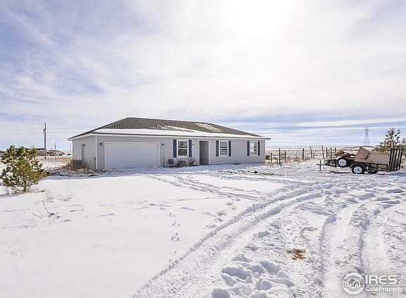 Clean and well maintained ranch style home with 3 bedrooms, 2 full baths, and oversized 2 car garage located on large quiet lot with no HOA in Carr, CO. Just a short drive from I-25 and close to Wellington, Fort Collins, and Cheyenne! You won't find a better price for a stick built/framed home in this area. Propane gas, PVREA, well, and septic. Clean and ready to move right in.