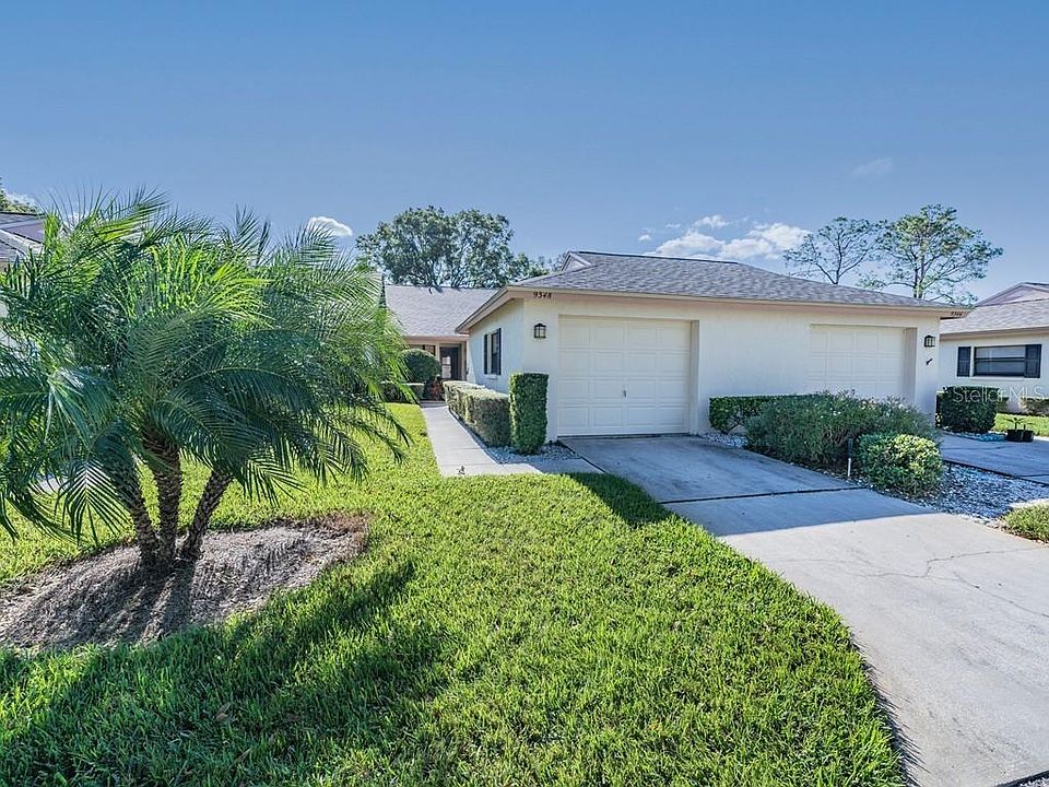 SPECTACULAR views from your Seven Springs Golf & Country Club GOLFVIEW VILLAS with oversized detached garage...Move-in READY for YOU! Nature abounds from the lushly landscaped GARDEN that welcomes you to the private landscaped VIEW OF HOLE #5 on this CHAMPIONSHIP COURSE from your enclosed lanai! Sliding doors to GREAT ROOM with built in WET BAR make this the perfect space to entertain guests! Meticulously Maintained, smoke & pet free, this ENERGY EFFICIENT residential CONDO has a NEW ROOF 2020, 2 hurricane impact windows in bedrooms 2019 (w/30 yr transferrable warranty), EXTRA INSULATION in attic, LED LIGHTING inside & out and 14 Seer 2 Ton 2014 HEAT PUMP AC. updated door hinge hardware, 6 panel colonial doors, newly painted interior with wood laminate floors ushering you from Foyer to OPEN Dining Area, kitchen, breakfast nook, guest bedroom and hallway. OPEN FLOORPLAN boasts vaulted ceilings with 2 NEW SEE SKY thru SKYLIGHTS (2020) for a light, bright living space! Kitchen with trey ceiling, raised panel white cabinets has built in wine rack, smooth top glass range and upgraded counters extended for pass thru and breakfast bar, PLUS BAY WINDOW breakfast nook or office area overlooking lush foliage in front garden. Enjoy coffee on your PAVER PATIO with with step stone walkway thru maintenance free rubber mulch to Detached 1.5 car garage with exit door and electric garage door opener. OWNERS RETREAT is privately located at the rear of the CONDO with its own bath Ensuite featuring tastefully updated vanity, oval sink, updated plumbing fixtures, lighting, raised commode and spacious shower with STUNNING TILE FLOOR and accent shower floor! SPLIT PLAN has Guest quarters on a separate wing with privacy door to guest bedroom & guest bath with updated mirror, cultured marble vanity top, raised commode tub/shower combo with tile floor. Come to SUNNY FLORIDA and Enjoy the Country Club lifestyle in this MAINTENANCE FREE CONDO which includes exterior maintenance, repairs and insurance of building and grounds, water, sewer, trash, reclaimed water irrigation, internet, Cable TV, private roads, and 24 hour Man guard Gated community with amenities: 2 swimming pools, clubhouse with Bingo and planned activities, tennis courts, Championship golf course and Fitness center. Located close to shopping, restaurants, major highways, medical facilities and the beaches! Don't miss this RARE OPPORTUNITY to have your own lush garden area in an UPDATED CONDO with a Golf Course View! CALL TODAY!