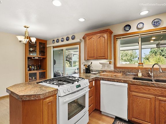 Open House Sun 8/15 1-3. A surprise inside! Much larger than it appears! Pristine dayranch with City/DT Portland Views! Tile entry, Hardwood floors,2 gas frplcs,great for entertaining, Windows:4 yrs old, Roof & Furnace:8 years old, A/C:2 years old, Updated electrical.Travertine floor/cntrs bath.EZ access to freeways/shopping,desirable fenced yard w/patio,deck & raised garden beds. Enclosed workshop under deck on lower level. The 4th bedroom dn is non-conforming. Pool table is included.Blt-in bar