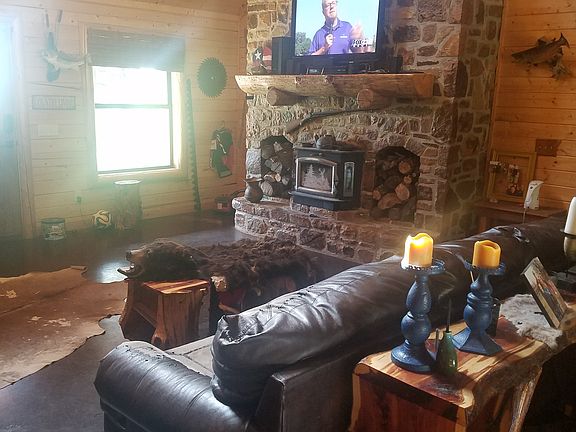 Log home on 10 acres would be $365,000!! Log home on 15 acres $399,000 or log home and 5 acres is $315,000 firm on price. A beautiful Log Cabin that sets on 5 Acres a 30x30 shop no Neighbors. A MILLION dollar View with option to buy more land. The home has a buck wood stove that does heat the whole house. Solid hickory cabinets through out the home. All antler chandlers and light fixtures log staircase and hand rAiling. Full 8ft wrap around porch with 2 car attached carport. The home is on rule water and all electric. 26 ga metal roof on home. Has 2 ac units 4ton for downstairs 3ton for upstairs. The home also has foam insulation and is very efficient. A very reputable company called Saterwhite log homes dried the home in for me in 2010 then I finished the interior. I have every receipt from building the home. The master bed and bath is down stairs along with the living room laundry room kitchen dining room and 1 of the bedrooms and full bathroom. Up stairs is a bedroom on each end with loft in the middle. There is a full bathroom upstairs too.
