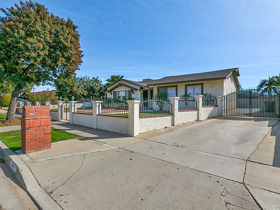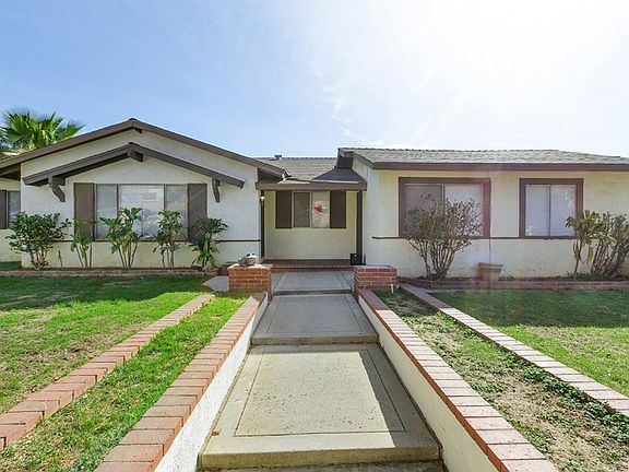 REMODELED SINGLE STORY WITH RV PARKING. Front yard is fenced and offers a grass yard and a stairway that leads to a covered front patio. The entry arrives to an open floor plan offering a spacious family room with laminate wood floors and into the remodeled kitchen. The kitchen offers brand new cabinetry, granite countertops, stainless steel appliances, a countertop eating area, breakfast nook and recessed lighting. There are three spacious bedrooms, one which has direct access to a remodeled bathroom. The second hall bathroom is also remodeled with new vanity and a custom tiled shower. A spacious back bonus room is a perfect family room and offers double doors out to the backyard. A 4th bedroom on the back of the home is beyond the bonus room. Gated backyard offers plenty of parking space, rear garage entry and a grass area with a fruit tree.