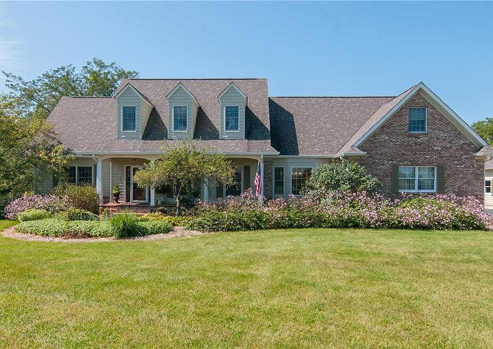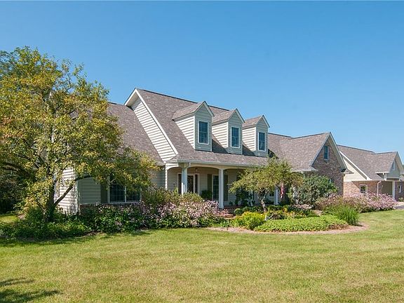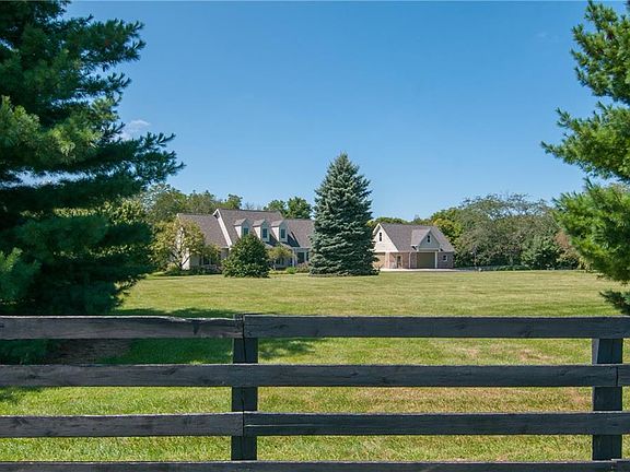 You will cherish this well maintained country estate on 5+ acres with horse barn/detached garage/shop/cement floors except stalls. House features custom wood work, oak library, hickory floors, engaging formal living room with gas fire for ambiance. Classic dining room with built-in hutch, master suite on main level with his-and-hers closets. Charming kitchen with cherry cabinets and breakfast area, second kitchen in lower level, two laundry rooms, large screened porch, paved driveway, walk-out basement. Emergency electrical provision. Geothermal heat with propane back-up