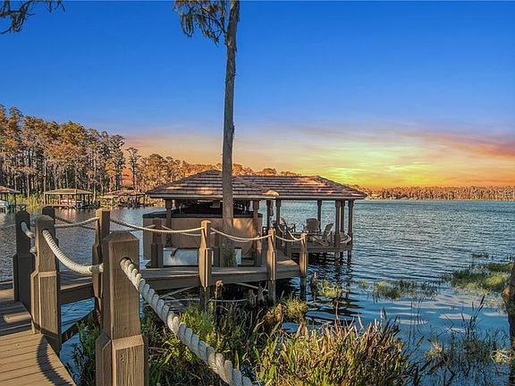 THIS HOME NOW INCLUDES ALL FURNISHINGS ART WORK AND ACCESSORIES IN THE PRICE, A 500,000 VALUE!! THIS MAY BE THE NICEST LAKEFRONT HOME IN KEENE'S POINTE!! Situated alongside the shores of Lake Tibet this meticulous estate has a Mediterranean-Modern inspired design with recent full renovations. This extraordinary residence boasts 2 levels of casual elegance and tasteful influences of contemporary life. Formal grand entrance greets visitors into the 7,500+ sqft home with large open living areas, volume ceilings, and marble & wood flooring throughout. Gourmet kitchen with streamline cabinetry, professional series appliances, center island which flows to casual dining and family room. Grand owner's suite includes; wet bar, fireplace, sitting area, 3 level closet with spa room/massage area, bath with steam shower and soaking tub. Guest suite with en suite bath, pet/game room w 2500 gallon saltwater fish aquarium an elaborate laundry/prep area can be found on the other side of the main level. The upper level includes a gym and 3 full bedrooms with modern baths all featuring floating vanities and streamlined cabinets . The expansive pool deck has a summer kitchen, outdoor fireplace, covered and open air lanai. Stroll through the elaborate gardens which feature a gas fire pit, gas lanterns, stone fountains and a rock waterfall with a stream and bridge which meanders through out the grounds. This community is built around an 18-hole Jack Nicklaus Signature Golf Course and the Butler Chain of Lakes.