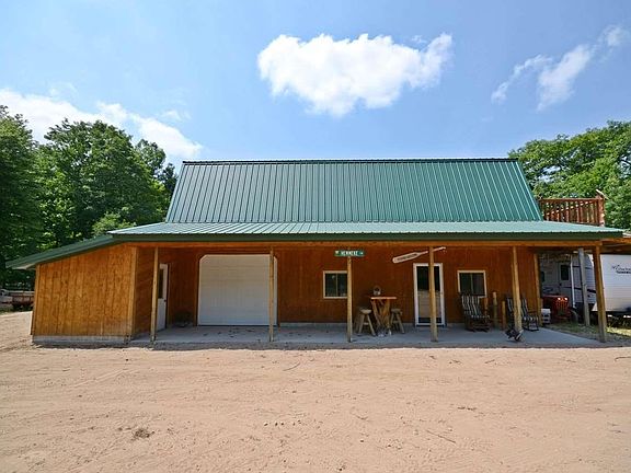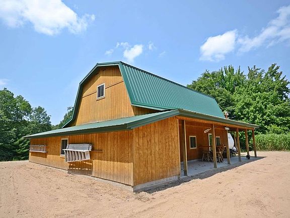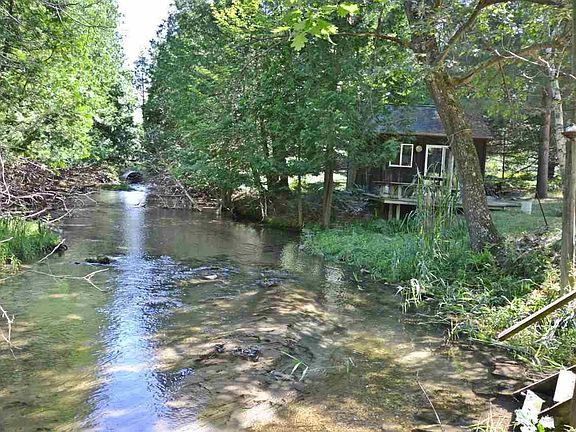 Year round playground or riverfront retreat. Enjoy the flowing waters of Cool Creek with ~700' or frontage. The main house features 1 bedroom and 1 bath with ample space to partition off another 2 bedrooms and a second bath if desired. Mahagony flooring runs through much of the upstairs living space with wood trim and wall treatments adding to the country feel. The kitchen and dining areas have an open floor plan layout with custom made cabinets. The elevated deck provides great views of the river below and your 10 wooded acres. A rustic guest house with large deck is located right next to the river. The property boasts great hunting. The current owners routinely enjoy watching the numerous deer and other wildlife from their home. There are plenty of nearby lakes for fishing and water sports. Surrounded by 1000's of acres of state and federal land, there is never a dull moment. If snowmobiling or trail riding on your ATV is your speed, this home is a perfect starting point. Buyer to verify all information and measurements.