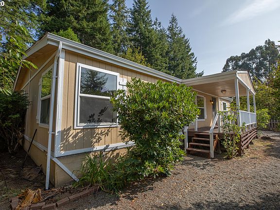 1.2 acres with a private dead end location! Close to Coos Bay this 3 bed / 2 Bath manufactured home has a nice open layout. Detached garage with extra storage, covered porch deck with expansive yards and fruit trees with nature trail for outdoor enjoyment. Call today! MUST SEE VIDEO/VIRTUAL TOUR ON THIS PROPERTY!!