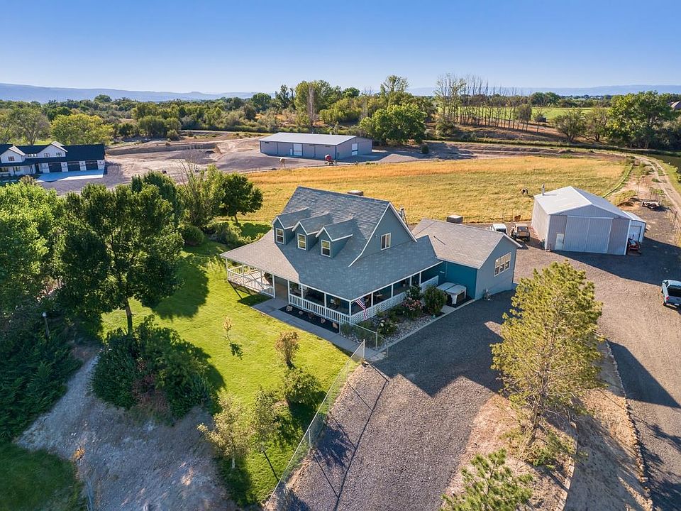 Welcome to your very own Colorado dream retreat! This North Area country estate checks all the boxes — 4 bedrooms, 4 bathrooms, sweeping mountain views, and 4.5 acres of wide-open freedom. From sunrises to sunsets, the wraparound porch is your front-row ticket to some of the best views in the valley. Step inside and you’ll find a home that feels both fresh and timeless, with brand-new paint, flooring, lighting, and stylish hardware throughout. The main-level primary suite makes for easy living, while upstairs holds more bedrooms (including a remodeled secret room - yes, a secret room!) that adds a playful twist to your everyday. The kitchen? Well imagine warm butcher block counters meet sleek Samsung smart appliances, upgraded cupboards, and thoughtful details like slide-out storage and custom window coverings. Upstairs boasts brand-new carpet, paint, and fixtures, making everything feel crisp and move-in ready. And don’t miss the private lower-level suite - complete with its own bedroom, full bath, and private entrance. Perfect for guests, extended family, or even a rental opportunity. Outside, this property keeps on giving. A 1,500 sq ft workshop with 3 220 plug-ins, a 2-post lift, pellet stove, and evaporative coolers makes it the ultimate playground for projects and hobbies. Add in a shed, chicken coop, fenced pastures, re-landscaped gardens, fruit trees, new sprinklers, a hot tub setup, and RV parking with a hook-up and dump and you’ve got yourself a mini homestead with all the modern perks. Toss in a fire pit and play area, and you’re ready for endless Colorado evenings under the stars. This isn’t just a house - it’s a lifestyle. Space to roam, room to create, and the peace of country living with every thoughtful upgrade already done. Welcome home.