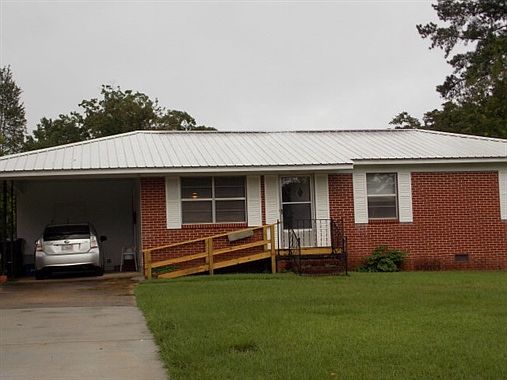 Solid Brick home with large lot. Handicapped ready with ramp. Larger rooms and big shower newly tiled. Laundry outside. Washerd dryer, refrigerator, and stove all remain. Brand new A/C unit and new metal roof. Metal storage building. For more info., call toll free 1 (888) 793-6601.