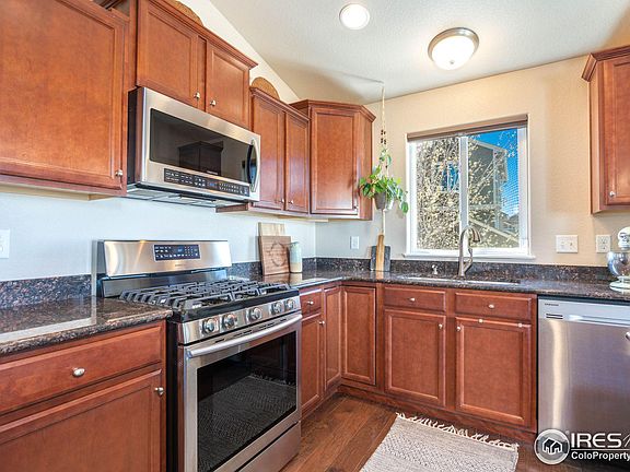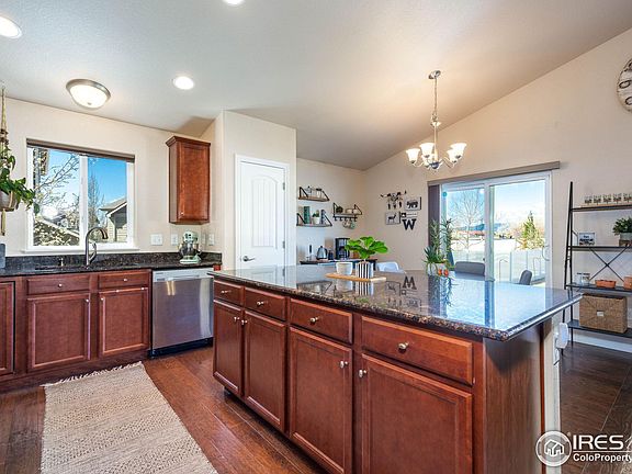 Welcome to this wonderful 4 bed/3 bath Saint Aubyn ranch style home with unobstructed Mountain Views!! Built in 2015 it has been kept in mint condition and offers an open floor plan flooded with natural light, gourmet kitchen, gas fireplace with custom-built mantel & beautiful engineered hardwood flooring. Upgraded carpet and high-end blinds throughout. The kitchen boasts a large island, pantry, crown molded cabinets, granite countertops with under mount sink, and SS appliances. Primary bedroom features vaulted ceilings, 5-piece bathroom with large soaking tub, stall shower, and a spacious walk in closet. The basement offers 2 extra bedrooms and a huge rec room perfect for entertaining. Enjoy the breathtaking view of the Front Range from the large fully fenced backyard that includes an amazing flagstone patio for those summer nights in front of a firepit. Close to the hospital, Walmart, Lowes, Centerra and easy access to I25 and 34.