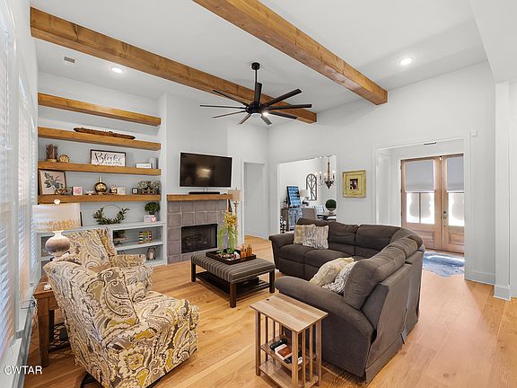 - Beamed Ceilings, Built-in Features, Ceiling Fan(s), Ceramic Tile Shower, Crown Molding, Double Vanity, Eat-in Kitchen, Kitchen Island, Open Floorplan, Pantry, Master Downstairs, Recessed Lighting, Separate Shower, Soaking Tub, Walk-In Closet(s)