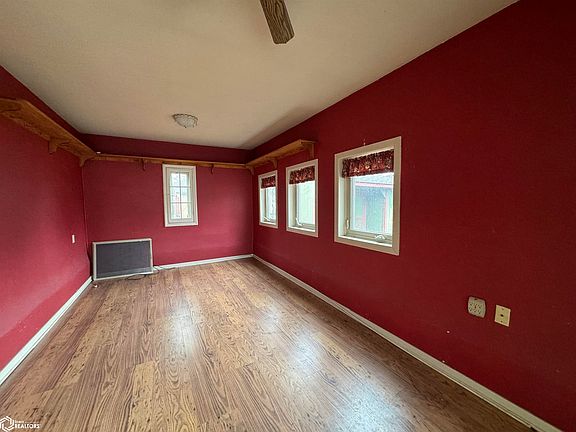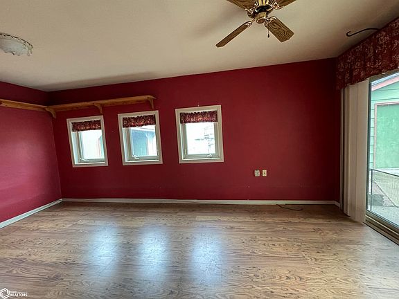 This unique home in the heart of Webster City offers endless charm that makes you feel right at home from the minute you walk in the door. The spacious eat-in kitchen with built-in booth seating leads to the dining and living room featuring beautiful hardwood floors and original fireplace with gas insert. There is one main floor bedroom and 3/4 bath. Upstairs you will love the character of the 2 spacious bedrooms and full bath. Sliders off the back 3 seasons porch lead to the fenced in yard with quaint garden shed and 2 car detached garage. Large yard behind the fenced area as well. You won't want to miss out on all the character of this cottage style home, call today to schedule a showing!