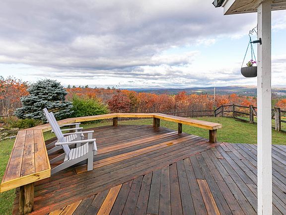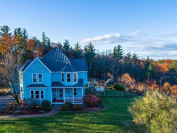 Stunning North Westerly Mountain Views from this Pembroke 4 Bedroom 4 Bath Reproduction Victorian Colonial set on 13.02 Acres. If you love privacy and spectacular sunset views, then this is the one you have been waiting for! When you arrive at this property you will immediately be wowed. Usable outdoor space is abundant, you can sit on the farmers porch, enjoy dinner on the back deck, relax in the hot tub, sit around the fire pit, get some chickens for the coop, garden outside or in the greenhouse, walk the trails through the property, and pick wild berries from the land. There is an attached 2 car garage with walk up unfinished storage space above. Mudroom has epoxy floor and there is maple hardwood through the living room, family room, and dining room. The kitchen is open and has a peninsula and an eat in space with a great view. The family room has a beautiful stone fireplace with wood stove insert. The library makes a great office. Upstairs are 4 bedrooms, 2 that share a full bath and the other two each have their own bath. Primary has a tray ceiling and jet tub. 2nd floor laundry. The driveway is long and steep in parts but it is worth it for the view at the top. Metal roof and new Okna windows. On demand generator and central AC. Also an additional building at the road that could be used for commercial use or an apartment with a little modification as it has its own well, septic, furnace, and electrical. Delayed showings begin Sat 10/29 at 9:00 am by appointment only.