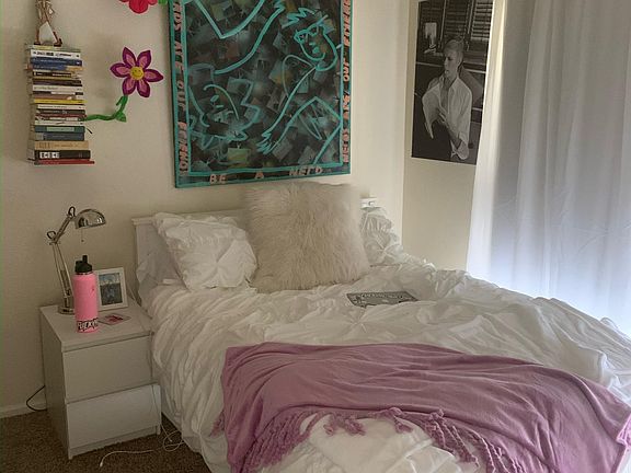 Best Location on the Hill! Directly across from campus, Security building with reserved underground parking. Huge deck with storage and mountain views. Vaulted ceilings, Washer/Dryer in the unit! Wood floors, dishwasher, microwave, new carpet and paint, and skylight. DON'T MISS THIS 2 BEDROOM CONDO Owner pays for trash and sewer, renter pays for utilities and cable